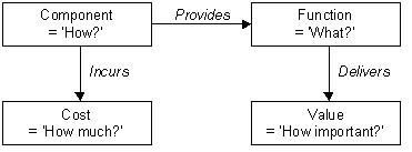 Fig. 1.3 Decrease the cost or increase the value The general principle of value is a simple ‘return on investment’ idea. People will spend money on things that they think are worth it. These ‘people’ include those who invest in the company (and to whom lower production cost is of value) and end customers, to whom functions of the product or service you offer provides distinct value. The first step of Value Analysis of a component is to identify the primary functions of a selected component. These may be either use or aesthetic functions and can often be identified by asking ‘What is the customer actually paying for?’ For example, a coat has a use function of ‘keep me warm’ and an aesthetic function of ‘make me look attractive’. Secondary functions may then be discovered which support the primary functions. For example, secondary functions that support the ‘attractive’ aesthetic function may include shape, colour, and so on. Further breakdown can then reveal the parts of the product, the processes that create them and the costs incurred in each, consequently enabling you to question and improve any of these, as in Fig. 1.4.