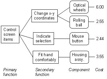 Fig. 1.4 Partial functional breakdown of computer mouse Value Analysis aims to make visible that which is often intangible, which makes