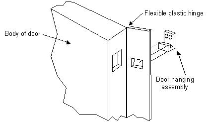 Fig. 4.2 A new door hinge? These ideas are unproven! We have been illustrating ways of thinking here and not designing a finished product. Beyond this thinking process there is often a long process of try-outs and finding ways of economically manufacturing the product, let alone marketing and selling it to the sceptical public. We can see, however, that it is not too difficult to generate good ideas by simply asking ourselves what functions we want the hinges to carry out, what forces are working for and against us and what type of friction is involved in different places.