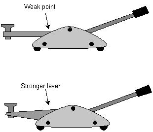 Fig. 4.4 Improving the vehicle jack Look around at lever systems–you may see these in the kitchen (grinders and graters will have some leverage somewhere) or in the garage (the door may have a lever system for operation) or anywhere. Now invent!
