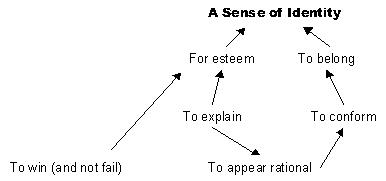 Fig. 8.4 Factors leading to a sense of identity The need to belongWe categorise ourselves in terms of other people and groups. Evolution has taught us that it is beneficial to live in tribes, where we can share out the work of daily survival. When asked about yourself, you may well describe yourself in terms of your work and family relationships: ‘I work for AB Corporation.’ or ‘I am married to Steve and have three children.’ If we lost our job, it would not just be the loss of money (affecting our sense of control) that hurt us, but also the loss of relationships and feelings of being outside the company with which we have identified ourselves for so long. The fear of rejection from the groups with which we identify is a powerful force and just the thought of this is enough to dissuade many people from ever taking their creative ability out of the cupboard where they have locked it for fear of its potential social effects. The need to conformOne way in which we retain approval by other group members is by preserving their sense of control, which translates into conforming to group norms. This may include dressing similarly (from jeans to suits), using jargon (from street slang to professional terminology) and behaving within and outside the group in specific ways. Loneliness can be a terrible feeling and the threat of rejection or even simple disapproval by group members is a powerful incentive to conform. Even the stereotyped image of the ‘lone inventor’ (remember how we categorise people) who is shunned and laughed at for his or her social ineptitude is enough to dissuade many people from taking any actions that might get them thought of as inventive. We also conform to our own self-image; ‘I am not creative’ or ‘I cannot invent things’ are powerful affirmations that can effective prevent us from even trying to disprove them. The need for esteemOnce we are established within a group, our next step is to climb the ladder of popularity, seeking the esteem of other members of the group. Esteem can be a slippery slope, and any form of behaviour that threatens the group can result in a loss of social position. We are so driven by the need for approval of others, we tend to avoid activities such as making creative suggestions that might cause discord of any kind. It is critical if you require approval or agreement when being creative around other people, whether it is coming up with new ideas or showing them your inventions, to get social permission, for example by explicitly stating that this is an new and uncertain situation. The need to appear rationalIf I am not rational, then this means that I will upset the need for predictability of the people around me. Where the creative process is not understood, then anyone speculating about ideas may appear to be irrational, leading us to avoid such situations. As with most creative situations, the social effects require very careful management. The need to win (and not fail)If I succeed at what I do, then I will not only increase my sense of control, but should also increase the esteem I receive from other people. This need is illustrated when our favourite football team wins and we say ‘We won!’, bringing closer our identity with the team, but when the team loses, we say, ‘They lost,’ now distancing ourselves from the failure of team. Inventing and being creative is, by necessity, a numbers game. You must expect failure on the road to success. Thomas Edison, who held over 1300 patents, failed many times when inventing the electric light bulb. When criticised for not producing early results, he replied, ‘Results! Why man, I have gotten a lot of results. I know several thousand things that won’t work.’ The need to explainIf I can explain my own actions, then I can appear rational. If I can explain other things, then I can appear to be an expert and thus increase my standing with other people. Coupled with the needs to appear rational and to win, this often appears in the form of blaming. When something happens, the first response of many children (and adults, in more subtle forms) is, ‘It wasn’t me,’ followed by an instant theory of what happened, attributing the cause to other people and events.
