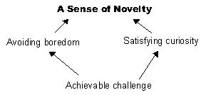 Fig. 8.5 Factors affecting our need for a sense of novelty BoredomRepeating the same action time after time, as many factory workers know, can be deadly dull. Even when we go on holiday and are sunning ourselves by the swimming pool, many of us can only do this for a limited period before we have to get up and do something. In a world-wide study of happiness, Chicago professor Mihaly Csikszentmihalyi discovered the work-leisure paradox, where when we are at work, we dream of being at leisure, but when we are at leisure, we are not as happy as when we are embroiled in some stimulating work. CuriosityIf boredom pushes us away from doing nothing, it is curiosity that pulls us towards investigating new things. Children are born curious and constantly explore and test the world around them. Lewis Carroll’s stories of Alice’s adventures are all about curiosity (the word and it variants appears 52 times in his books). As Alice said, ‘curiouser and curiouser.’ Unfortunately, the forces of curiosity are often overcome by the forces of control. The need that adults have for control and conformity lead them to suppress the sometimes destructive explorations of young children. This suppression then carries over into adult life and we learn to be very cautious about how and where we allow our inner child to express itself (see the side panel ‘Transactional Analysis’). Achievable challengeMihaly Csikszentmihalyi, through his work on happiness, discovered the simple secret of success. The trick is to take on challenges which stretch you, but where you have sufficient capability, time and other resources to complete the challenge. He also describes the ‘autotelic’ personality, where people of all classes and positions have discovered the secret and set their own short- and long-term achievable challenges.